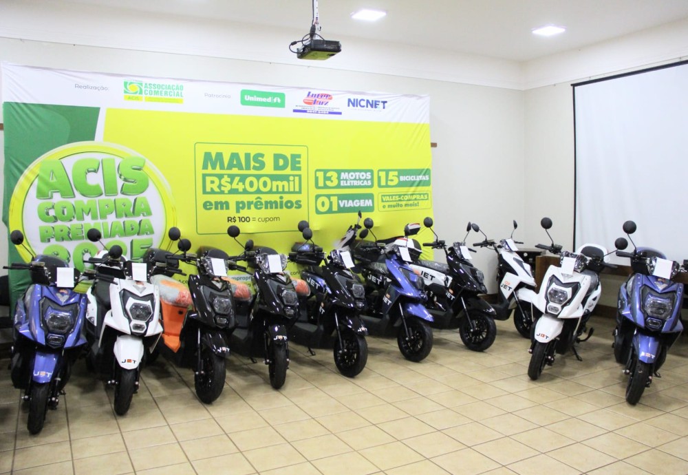 Ontem, dia 15, a Associação Comercial e Industrial de Sertãozinho (ACIS) realizou a entrega dos prêmios da promoção "Natal Iluminado", contemplando 10 consumidores com motos elétricas 0 km.