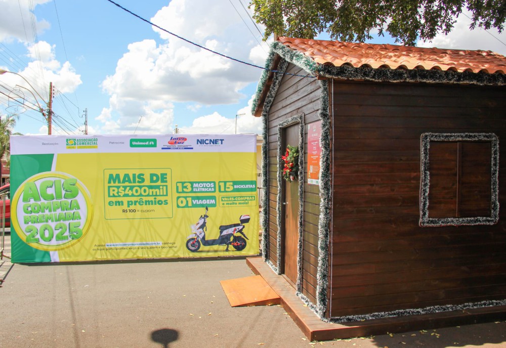 Promoção Natal Iluminado – Neste mês de dezembro, a ACIS sorteará 10 motos elétricas. Para participar e concorrer aos prêmios, basta realizar compras a partir de R$ 100 nas lojas participantes e cadastrar os cupons no site www.aciscomprapremiada.com.br. O sorteio será realizado em 29/12.