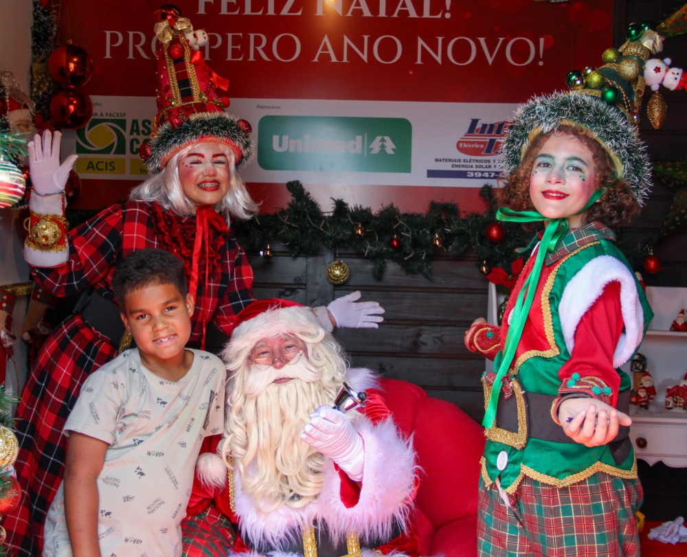A programação foi concluída na nova Casinha Natalina da ACIS, instalada ao lado da Escola Profª Maria Conceição Rodrigues Silva Magon, onde o Papai Noel permaneceu até as 17h.