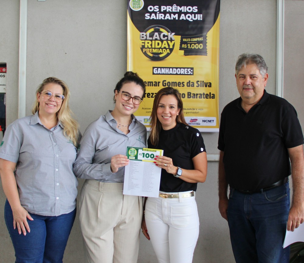 Na manhã desta terça-feira, dia 16, a Associação Comercial e Industrial de Sertãozinho (ACIS) oficializou a entrega da premiação da promoção “Black Friday Premiada”, que integra a campanha “ACIS Compra Premiada 2025”, na qual três consumidores foram contemplados com vales-compras no valor de R$ 1.000 cada.