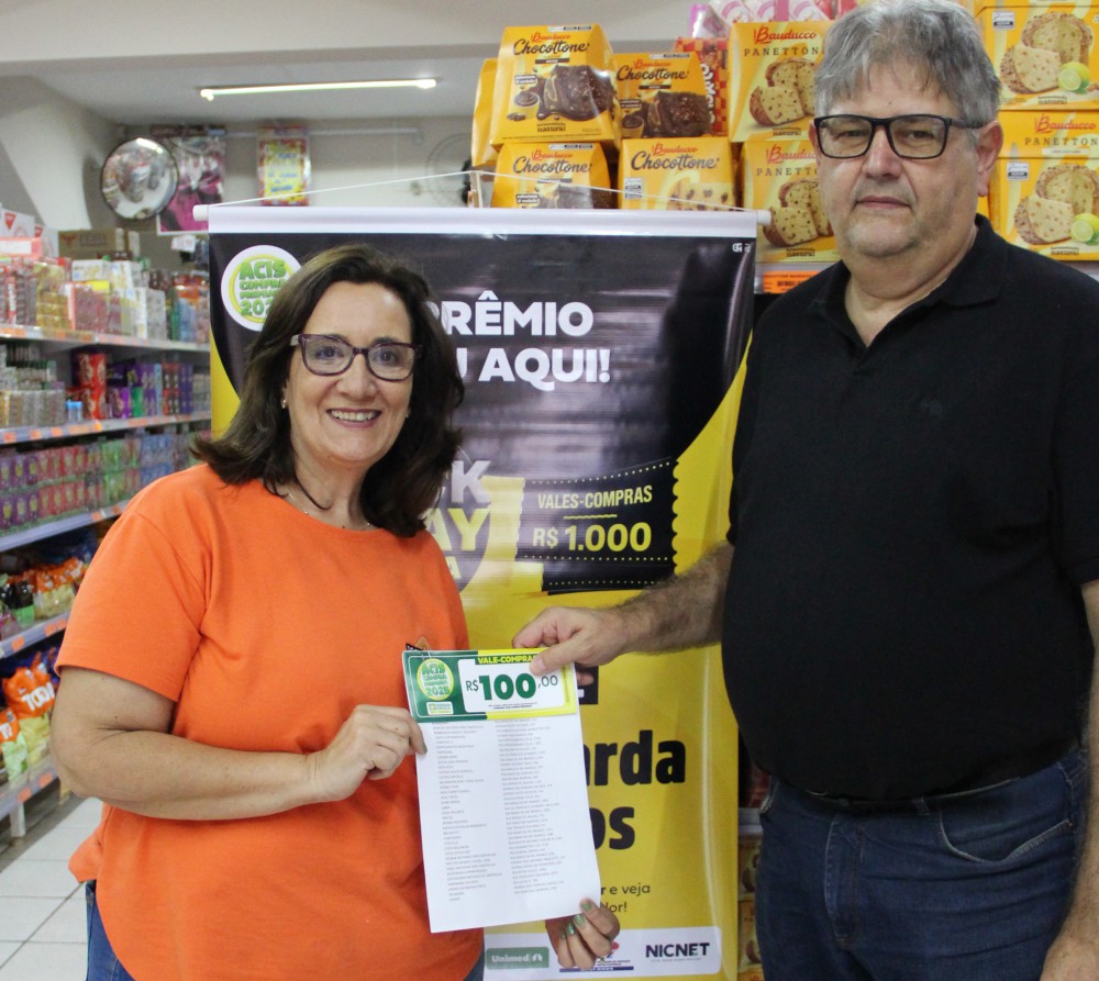 Ademar Gomes da Silva e Andreza Postigo Baratela receberam seus vales no Supermercado Copercana, onde tiveram seus cupons sorteados. “Estou muito feliz em ganhar o vale-compras, ainda mais agora no final do ano, quando as compras aumentam. Vai ajudar bastante. Esse foi o segundo prêmio que ganhei da ACIS; já ganhei uma bicicleta em abril, e vou continuar exigindo e cadastrando meus cupons no site”, comentou Ademar.